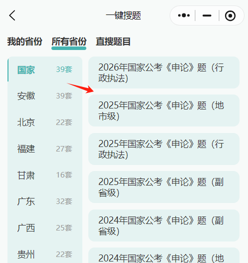 【所有省份】:默认展示所有省份,点击一个省份后出来对应的历年试卷列表