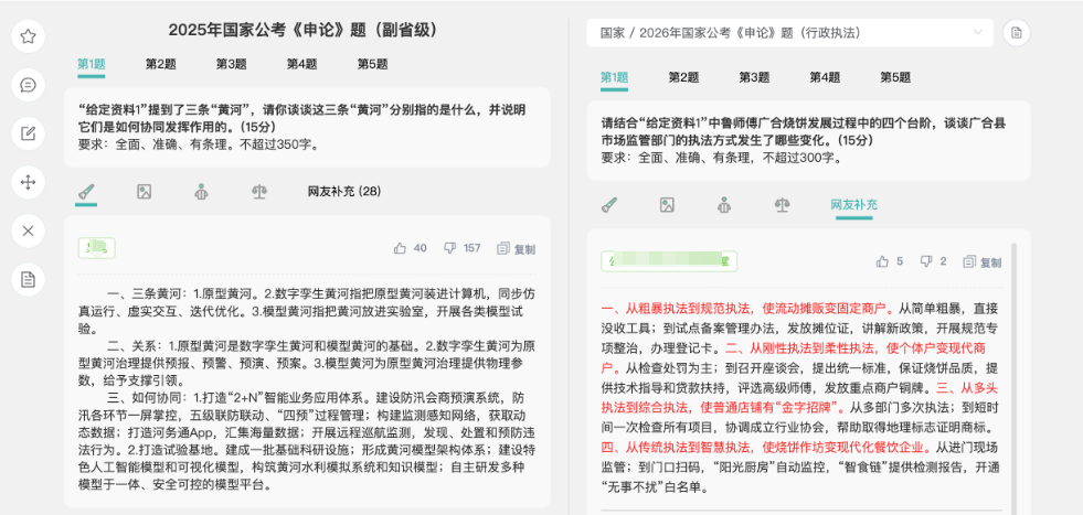 在答案查看页面的右上角,点击同屏对比按钮,会出现选择第二道题的按钮,搜索题目标题,即可显示出对应试卷