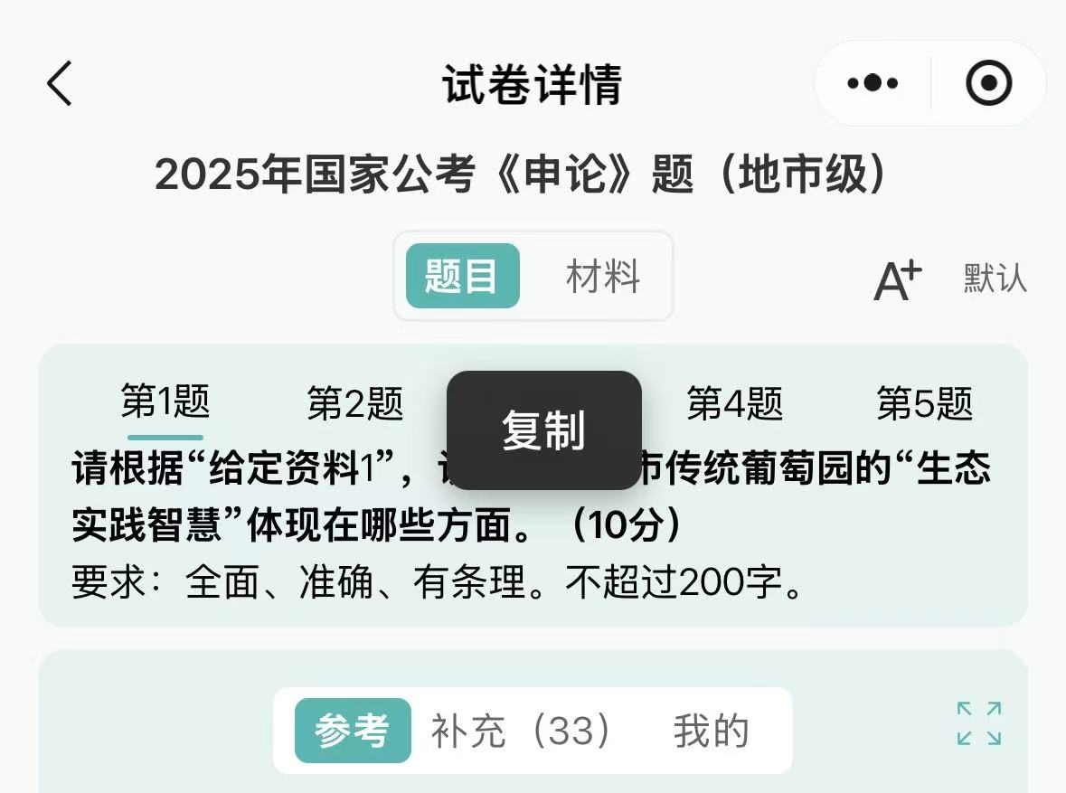 为了方便大家在使用软件时把答案、材料或者题目文本粘贴到自己的复盘本或笔记中,我们特此推出了复制功能。此功能属于会员权益。